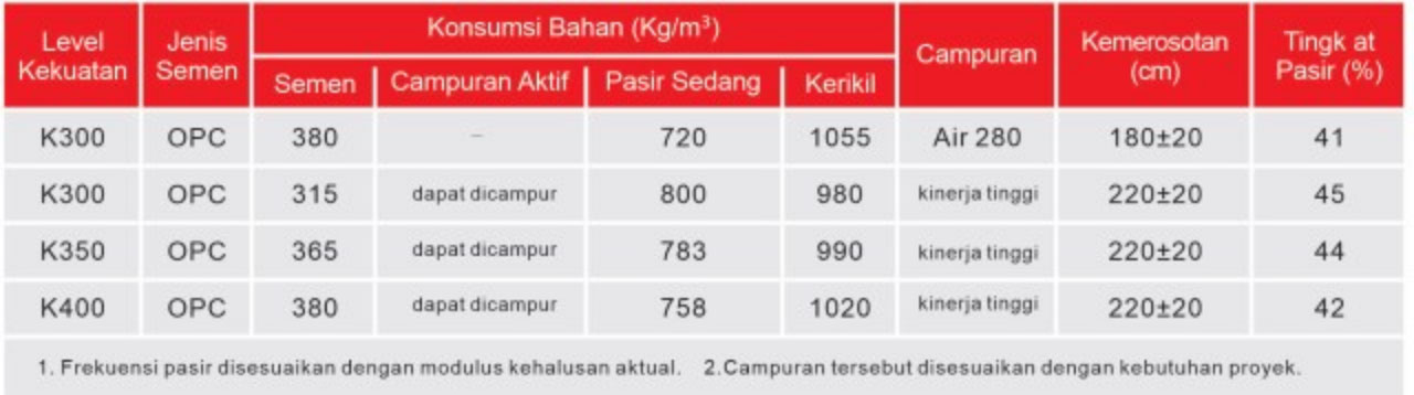 • Meracik proyek beton berkekuatan dan berkinerja tinggi dengan berbagai tingkat kekuatan dari K400 hingga K600.
